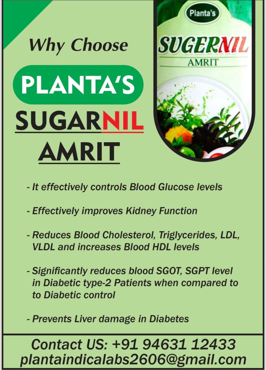 -SGOT ,SGPT are marker enzymes for liver ,increase in blood level of these enzymes is a sign of liver damage. In a study it was found that treatment with Sugernil Amrit significantly reduces blood SGOT , SGPT levels in a diabetic type-2 patients when compared to diabetic control. Results suggest that Sugernil Amrit  prevents liver damage in diabetic patients.